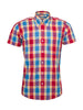 Men's colourful multi check shirt, complete with our iconic 3 finger button down collar, full length back box pleat, V- Cut out on sleeve.