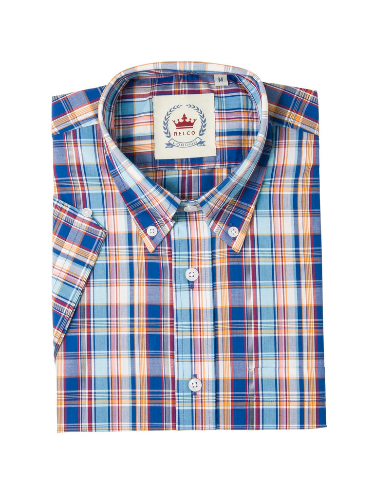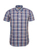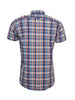 Men's limited edition Blue check shirt, complete with our iconic 3 finger button down collar, full length back box pleat, V- Cut out on sleeve.